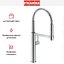 Выдвижной излив в кухонном смесителе — это гибкая трубка из резины в металлической оплетке, расположенная внутри основного излива. Для того, чтобы воспользоваться гибким изливом — например, наполнить высокую посуду, — достаточно включить воду и потянуть за головку, находящуюся на конце трубки.