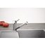 Внутри крана помещается шланг, который можно растянуть, чтобы достать струей воды до второй чаши мойки или тщательно сполоснуть посуду.