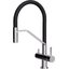 Выдвижной излив в кухонном смесителе — это гибкая трубка из резины в металлической оплетке, расположенная внутри основного излива. Для того, чтобы воспользоваться гибким изливом — например, наполнить высокую посуду, — достаточно включить воду и потянуть за головку, находящуюся на конце трубки.