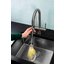 Внутри крана помещается шланг, который можно растянуть, чтобы достать струей воды до второй чаши мойки или тщательно сполоснуть посуду.