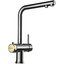 Рычаг для включения фильтрованной воды применяется в современных комбинированных смесителях, где из одного и того же излива подается и водопроводная, и питьевая вода. Такие смесители типа «два в одном» отличаются от обычных тем, что имеют не два подключения, а три, где третье соединяет смеситель с фильтром. Очищенная вода подается по изолированной трубке, проходящей внутри излива. Для удаления накипи, солей металлов, микроорганизмов и прочих вредных примесей могут применяться различные типы фильтров. Проточные фильтры устанавливаются под мойкой и включают несколько картриджей, которые необходимо менять по мере использования. С их помощью можно избавиться от таких примесей, как железо, хлор и многие другие. Устройства с системой обратного осмоса оснащаются диффузором, включающим картриджи для предварительной очистки и осмотическую мембрану, задерживающую практически все вредные примеси.