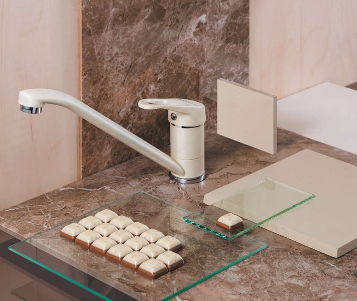 Не менее известны и популярны смесители из латуни: их выбирают за лучшее соотношение качества и стоимости. Латунь — это сплав меди и цинка, она также не ржавеет и легко обрабатывается, так что дизайн таких смесителей может быть самым разным. Так, производители предлагают множество латунных смесителей в классическом стиле. Кроме этих материалов, в продаже имеются модели из сплава меди, цинка и алюминия (ЦАМ), а также из силумина — сплава на основе кремния и алюминия, достаточно дешевые, но менее прочные.