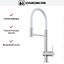 Специальная насадка позволяет выдвинуть излив как маленький шланг и направить струю в слишком высокую кастрюлю, которая не помещается под стационарным краном, на овощи в раковине, на загрязнения в неудобных уголках мойки, которые нужно удалить и т.д. Дополнительная деталь, которая повышает комфорт использования, — аэратор. Он делает поток воды мягче, насыщая его кислородом, таким образом дополнительно уменьшая ее расход: объем струи увеличивается за счет воздуха, а не за счет повышения напора из водопровода. К этой модели можно подключить фильтр для питьевой воды.