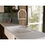 Специальная насадка позволяет выдвинуть излив как маленький шланг и направить струю в слишком высокую кастрюлю, которая не помещается под стационарным краном, на овощи в раковине, на загрязнения в неудобных уголках мойки, которые нужно удалить и т.д. Дополнительная деталь, которая повышает комфорт использования, — аэратор. Он делает поток воды мягче, насыщая его кислородом, таким образом дополнительно уменьшая ее расход: объем струи увеличивается за счет воздуха, а не за счет повышения напора из водопровода. К этой модели можно подключить фильтр для питьевой воды.