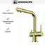 Для подачи чистой воды смесители могут оснащаться единственным рычагом, при помощи которого производится переключение на фильтр. Этот же рычаг регулирует напор и температуру водопроводной воды. Чаще на изливе имеются два рычага, один из которых отвечает только за включение фильтрованной воды.