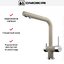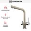 Для подачи чистой воды смесители могут оснащаться единственным рычагом, при помощи которого производится переключение на фильтр. Этот же рычаг регулирует напор и температуру водопроводной воды. Чаще на изливе имеются два рычага, один из которых отвечает только за включение фильтрованной воды.