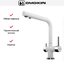 Благодаря особой конструкции вы можете также направить воду из раковины в ванну или из одной чаши мойки в другую одним поворотом крана в нужную сторону. Дополнительная деталь, которая повышает комфорт использования, — аэратор. Он делает поток воды мягче, насыщая его кислородом, таким образом дополнительно уменьшая ее расход: объем струи увеличивается за счет воздуха, а не за счет повышения напора из водопровода. К этой модели можно подключить фильтр для питьевой воды.