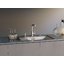 Длиной излива называется расстояние по горизонтали от основания смесителя до точки в раковине, куда падает струя воды. Учитывать длину при выборе смесителя и мойки так же важно, как и высоту. Основной фактор выбора: струя должна попадать в середину раковины, а не на одну из боковых поверхностей, чтобы не забрызгать столешницу и рядом стоящую бытовую технику. В идеале она должна попадать прямо на сливное отверстие, в крайнем случае место падения должно располагаться между сливным отверстием и передней стенкой. При этом нужно учитывать угол, под которым падает струя, а также расстояние от основания смесителя до ближайшей стенки раковины. Проводить измерения следует при максимальном напоре воды.