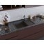 Длиной излива называется расстояние по горизонтали от основания смесителя до точки в раковине, куда падает струя воды. Учитывать длину при выборе смесителя и мойки так же важно, как и высоту. Основной фактор выбора: струя должна попадать в середину раковины, а не на одну из боковых поверхностей, чтобы не забрызгать столешницу и рядом стоящую бытовую технику. В идеале она должна попадать прямо на сливное отверстие, в крайнем случае место падения должно располагаться между сливным отверстием и передней стенкой. При этом нужно учитывать угол, под которым падает струя, а также расстояние от основания смесителя до ближайшей стенки раковины. Проводить измерения следует при максимальном напоре воды.
