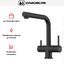 Для подачи чистой воды смесители могут оснащаться единственным рычагом, при помощи которого производится переключение на фильтр. Этот же рычаг регулирует напор и температуру водопроводной воды. Чаще на изливе имеются два рычага, один из которых отвечает только за включение фильтрованной воды.