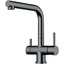 Рычаг для включения фильтрованной воды применяется в современных комбинированных смесителях, где из одного и того же излива подается и водопроводная, и питьевая вода. Такие смесители типа «два в одном» отличаются от обычных тем, что имеют не два подключения, а три, где третье соединяет смеситель с фильтром. Очищенная вода подается по изолированной трубке, проходящей внутри излива. Для удаления накипи, солей металлов, микроорганизмов и прочих вредных примесей могут применяться различные типы фильтров. Проточные фильтры устанавливаются под мойкой и включают несколько картриджей, которые необходимо менять по мере использования. С их помощью можно избавиться от таких примесей, как железо, хлор и многие другие. Устройства с системой обратного осмоса оснащаются диффузором, включающим картриджи для предварительной очистки и осмотическую мембрану, задерживающую практически все вредные примеси.