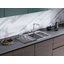 Длиной излива называется расстояние по горизонтали от основания смесителя до точки в раковине, куда падает струя воды. Учитывать длину при выборе смесителя и мойки так же важно, как и высоту. Основной фактор выбора: струя должна попадать в середину раковины, а не на одну из боковых поверхностей, чтобы не забрызгать столешницу и рядом стоящую бытовую технику. В идеале она должна попадать прямо на сливное отверстие, в крайнем случае место падения должно располагаться между сливным отверстием и передней стенкой. При этом нужно учитывать угол, под которым падает струя, а также расстояние от основания смесителя до ближайшей стенки раковины. Проводить измерения следует при максимальном напоре воды.