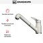Специальная насадка позволяет выдвинуть излив как маленький шланг и направить струю в слишком высокую кастрюлю, которая не помещается под стационарным краном, на овощи в раковине, на загрязнения в неудобных уголках мойки, которые нужно удалить и т.д. Благодаря особой конструкции вы можете также направить воду из раковины в ванну или из одной чаши мойки в другую одним поворотом крана в нужную сторону. Дополнительная деталь, которая повышает комфорт использования, — аэратор. Он делает поток воды мягче, насыщая его кислородом, таким образом дополнительно уменьшая ее расход: объем струи увеличивается за счет воздуха, а не за счет повышения напора из водопровода.