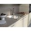 Длиной излива называется расстояние по горизонтали от основания смесителя до точки в раковине, куда падает струя воды. Учитывать длину при выборе смесителя и мойки так же важно, как и высоту. Основной фактор выбора: струя должна попадать в середину раковины, а не на одну из боковых поверхностей, чтобы не забрызгать столешницу и рядом стоящую бытовую технику. В идеале она должна попадать прямо на сливное отверстие, в крайнем случае место падения должно располагаться между сливным отверстием и передней стенкой. При этом нужно учитывать угол, под которым падает струя, а также расстояние от основания смесителя до ближайшей стенки раковины. Проводить измерения следует при максимальном напоре воды.