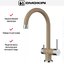 По высоте все смесители можно разделить на три группы: низкие, средние и высокие. Низкие обычно имеют один вентиль, а средние и высокие — по два. Высота низких смесителей составляет около 10-12 см, их выбирают для небольшой мойки глубиной около 120-140 мм и чаще устанавливают в ванной, чем в кухне. Кухонные модели могут дополняться выдвижными шлангами и поворотным изливом. Высота средних смесителей варьируется в пределах от 15 до 25 см: за стандартный принят размер 22 см. Они могут крепиться к мойке или к стене и подойдут для раковин глубиной около 170 мм. Для больших раковин глубиной более 20 см подойдут высокие изливы — от 25 до 50 см: они наиболее удобны, но требуют больше места.