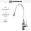 Высота излива — один из важнейших параметров, которые необходимо учитывать при выборе кухонного смесителя. Высотой называется расстояние от поверхности, на которой установлен смеситель, до его носика, то есть это, по сути, длина струи воды. Подбирать модель по высоте следует так, чтобы в раковину без труда помещались любые емкости, которыми вы пользуетесь, включая большие кастрюли и высокие вазы, а вода при ударе о дно раковины не разбрызгивалась во все стороны. Чем больше высота излива, тем глубже должна быть раковина.