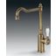 Однорычажная модель в стиле ретро позволяет регулировать напор и температуру воды одной рукой. Устройство представлено в цвете латуни. Поворотный излив может вращаться на угол 360 градусов, что позволяет устанавливать его над мойкой с двумя чашами. Модель отличается значительной высотой излива, ее рекомендуется размещать совместно с глубокими мойками. Смеситель оснащен насадкой-аэратором, с помощью которого вода обогащается воздухом: такая технология способствует экономии воды и уменьшает шум при ударе струи о дно чаши. Модель произведена в Италии, гарантия выдается на 2 года.