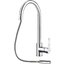 Выдвижной излив в кухонном смесителе — это гибкая трубка из резины в металлической оплетке, расположенная внутри основного излива. Для того, чтобы воспользоваться гибким изливом — например, наполнить высокую посуду, — достаточно включить воду и потянуть за головку, находящуюся на конце трубки.