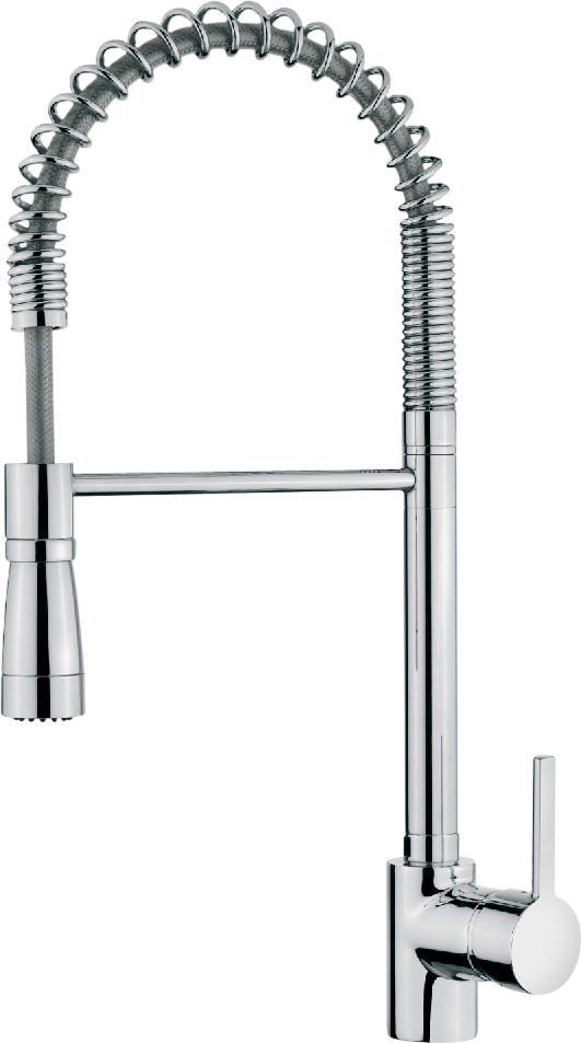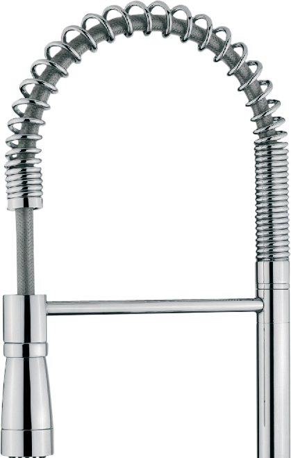 Выдвижной излив в кухонном смесителе — это гибкая трубка из резины в металлической оплетке, расположенная внутри основного излива. Для того, чтобы воспользоваться гибким изливом — например, наполнить высокую посуду, — достаточно включить воду и потянуть за головку, находящуюся на конце трубки.