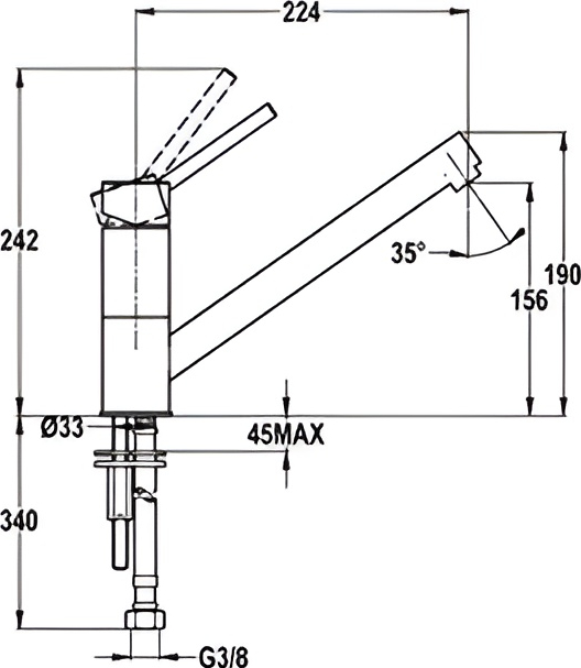 - Длина излива: меньше на 3 см