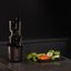 Сокопресс с возможностью автоматической предварительной нарезки ингредиентов. Специальная насадка позволяет сделать сорбет из замороженных ягод и фруктов за пару минут.