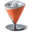 Соковыжималка для цитрусовых позволяет получить сок из лимонов, лаймов, апельсинов. Их достаточно разрезать пополам, поместить разрезом вниз на ребристый конус-наконечник и удерживать вручную или с помощью пресса. При включении прибора конус вращается, сок отжимается и стекает в контейнер.