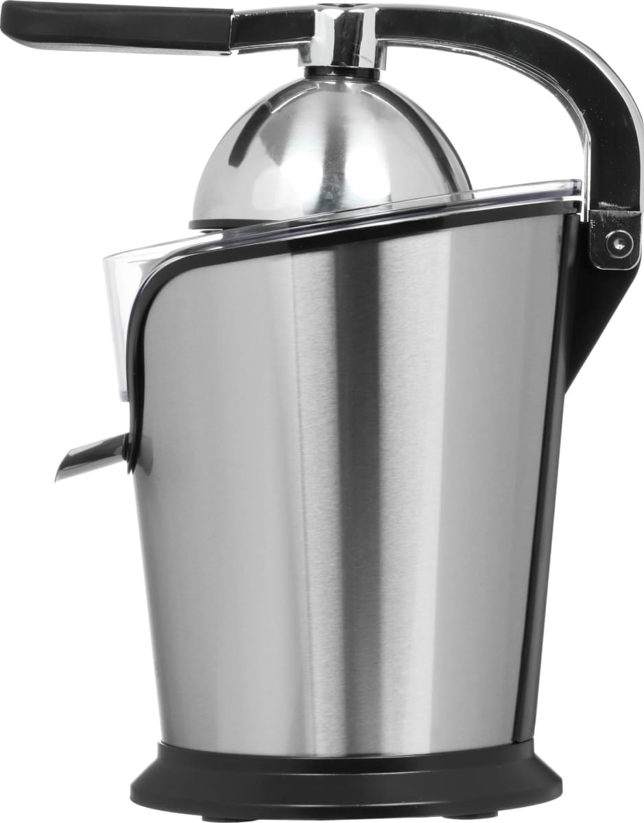 Соковыжималка для цитрусовых позволяет получить сок из лимонов, лаймов, апельсинов. Их достаточно разрезать пополам, поместить разрезом вниз на ребристый конус-наконечник и удерживать вручную или с помощью пресса. При включении прибора конус вращается, сок отжимается и стекает в контейнер.