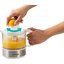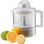 Соковыжималка для цитрусовых позволяет получить сок из лимонов, лаймов, апельсинов. Их достаточно разрезать пополам, поместить разрезом вниз на ребристый конус-наконечник и удерживать вручную или с помощью пресса. При включении прибора конус вращается, сок отжимается и стекает в контейнер.