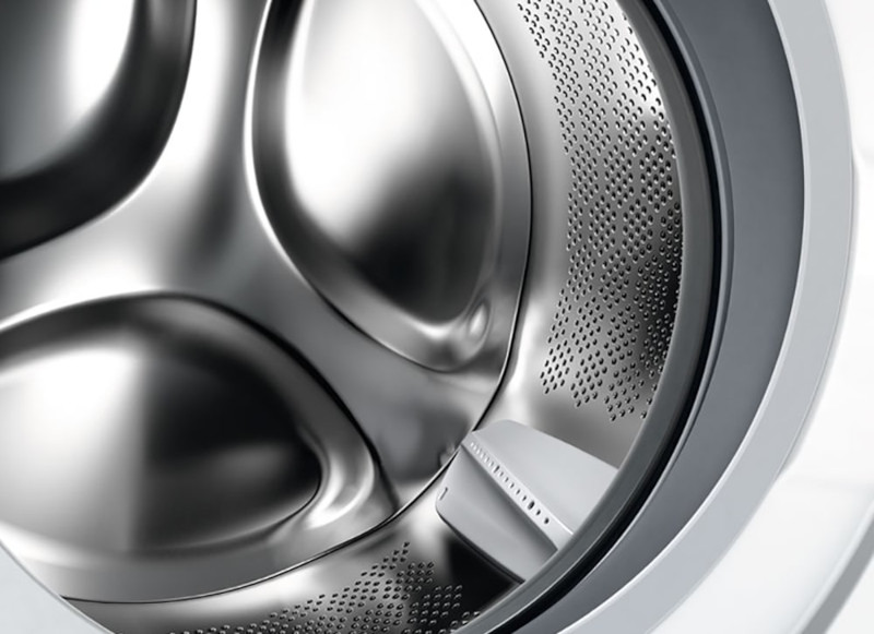 Барабан обычно изготавливается из тонкой нержавеющей стали, отверстия на боковой поверхности могут располагаться по-разному и иметь разную форму. Поверхность барабана в большинстве моделей не является гладкой: на ней находятся выпуклости и впадины для лучшего скольжения белья.