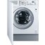 Полностью встраиваемые стиральные машины — один самых распространенных типов, особенно в условиях ограниченного пространства. Они размещаются в тумбах, скрываясь за мебельными фасадами и позволяя таким образом сохранить единство стиля. Вместимость этих устройств варьируется в пределах от 5 до 12 кг белья. Высота их составляет 84-85 см, что является стандартным значением, ширина равна 60 см, глубина же может быть различной. Размещают подобные модели обычно в кухне, а не в ванной, поскольку та имеет меньшую площадь.