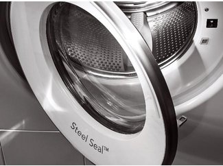 Уплотнитель позволяет герметично закрывать дверцу, однако постоянно подвергается воздействию горячей воды и активных моющих средств и быстро разрушается. Конструкция Steel Seal™ обладает целым рядом преимуществ. Для нее не требуется регулярная замена уплотнителя, диаметр люка увеличивается, что облегчает загрузку белья, грязь не скапливается под манжетой и не влияет на качество стирки.