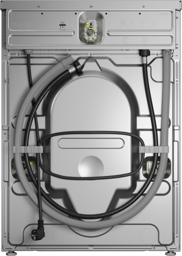 Техническая «начинка» построена вокруг бесщёточного мотора BLDC и барабана ActiveDrum, который вращается до 1400 об/мин при отжиме. Машина рассчитана на подключение к сети 220-240 В, мощность нагрева 2 кВт, общая потребляемая мощность при подключении — 2200 Вт. Слив обеспечивает насос, подача воды организована через PEX-шланг с латунными фитингами 3/4″, длины коммуникаций — сетевой кабель 210 см, сливной шланг 160 см, заливной 150 см. Конструкция включает чугунные противовесы и систему Quattro Construction™, а дверца Steel Seal™ усиливает герметичность при работе.
