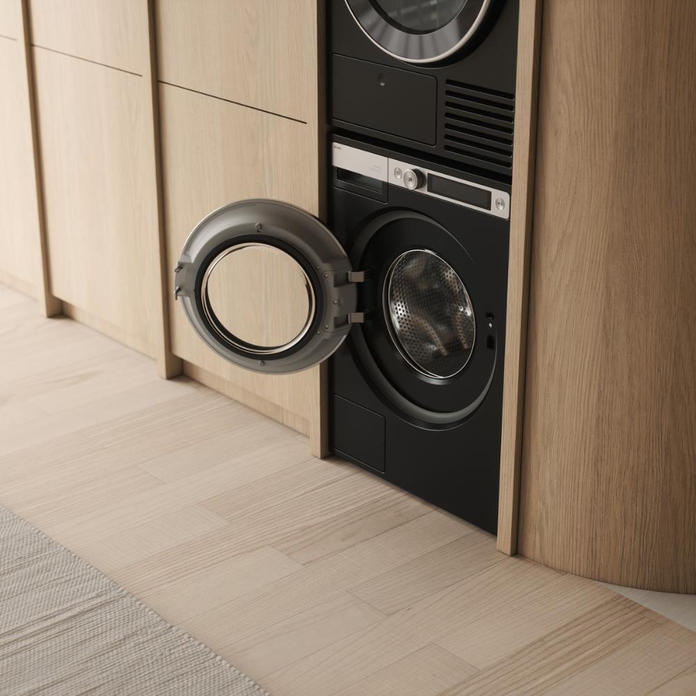 Машины с вертикальной загрузкой из-за своих конструктивных особенностей не могут встраиваться в мебель. Их высота составляет в среднем 89-90 см, и над ними необходимо оставить пространство для свободного открывания дверцы.