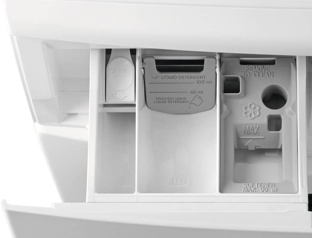 Отличие состоит в том, что белье в режиме предварительной стирки не просто загружается в барабан, а пропитывается водой с растворенным в ней моющим средством и медленно прокручивается на самой малой скорости. Для моющего средства при этом предусмотрен отдельный отсек в лотке.