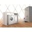 Менее востребованы из-за небольшого веса загрузки компактные стиральные машины: их высота составляет около 60 см, и в минимальном варианте может достигать 50 см. Большинство моделей стиралок оснащено регулируемыми ножками, с помощью которых высоту устройства можно увеличить на 5-8 см.