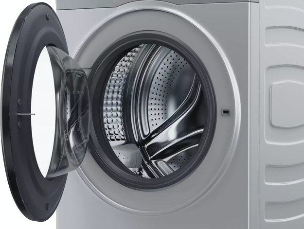 Цвет этой стиральной машинки — серебро. Мотор: Инверторный. Благодаря ему машина работает тише, потребляет меньше электроэнергии, сохраняя при этом необходимую мощность.