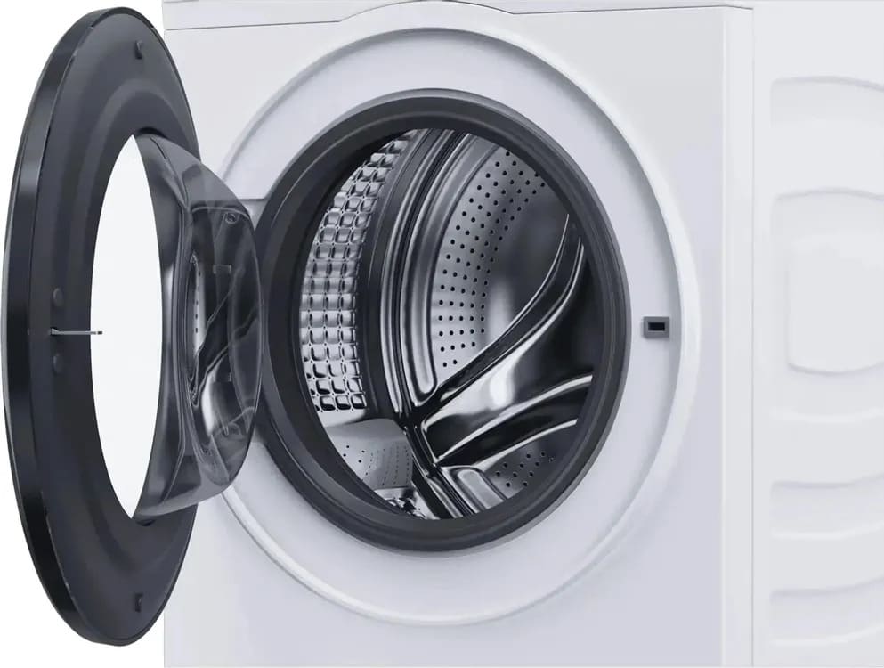 Цвет этой стиральной машинки — белый. Мотор: Инверторный. Благодаря ему машина работает тише, потребляет меньше электроэнергии, сохраняя при этом необходимую мощность.