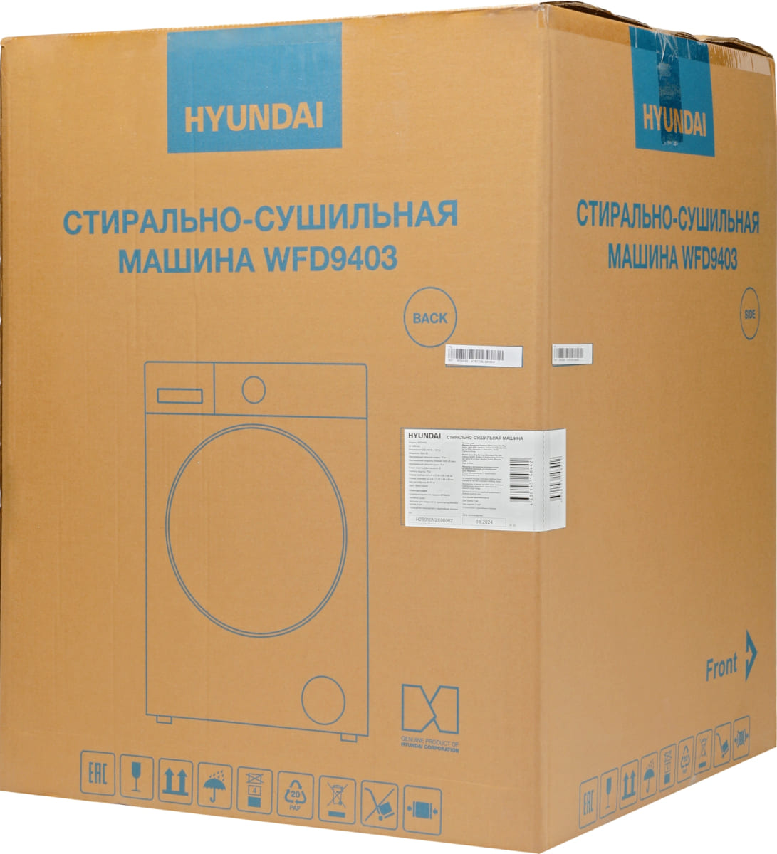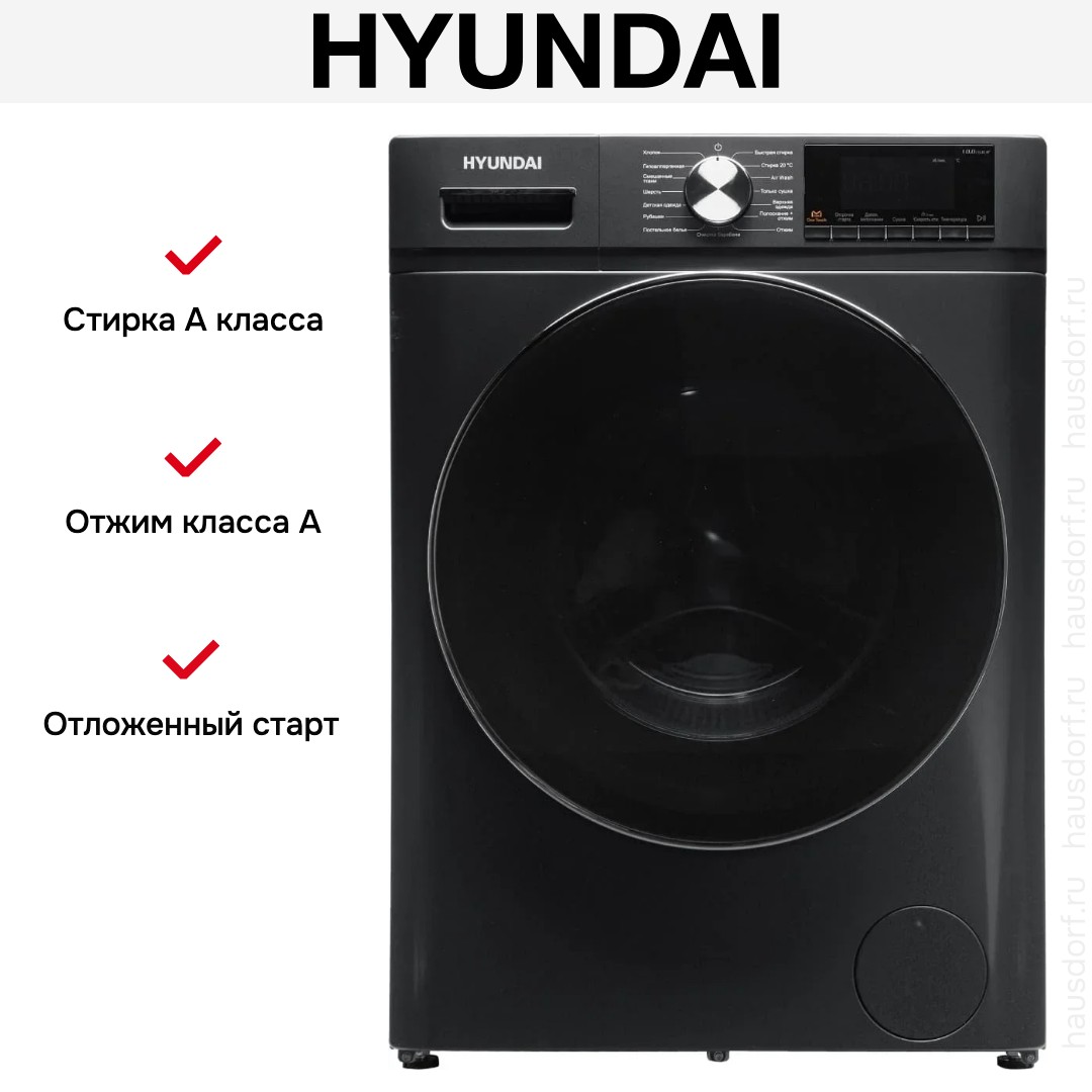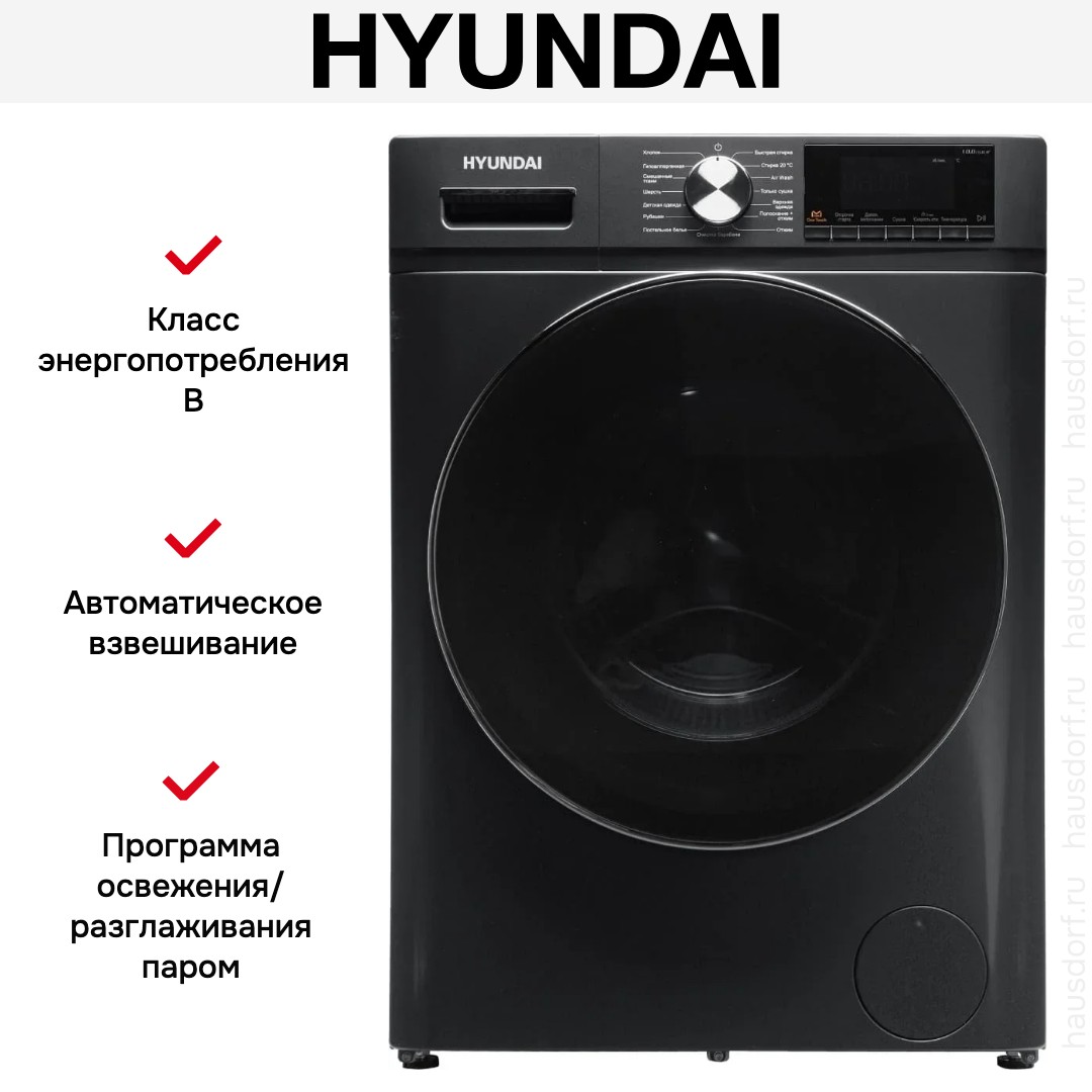 Стиральная машина Хендай WFD9403 темно-серый выпущена в стандартной конфигурации — устанавливается отдельно, поэтому рекомендуем заранее выделить для нее место в квартире. Благодаря классической фронтальной загрузке она привычна и удобна даже для тех, кто не очень разбирается в технике. В барабан помещается большое количество белья, что подойдет большим семьям или тем, кто часто стирает объемные вещи — постельное белье, верхнюю одежду. Максимальная загрузка: 10 кг.