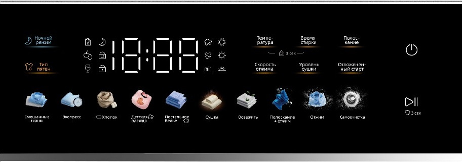 Вы загружаете белье, выбираете программу, задаете параметры и выставляете таймер для удобной работы.
