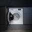 В отличие от другой встраиваемой техники, круглая дверца стиральных машин редко крепится к мебельному фасаду, она способна открываться отдельно. При размещении требуется оставлять зазор между задней стенкой машины и стеной помещения для свободного размещения шлангов. Нижняя часть стиралки закрывается цоколем, а верхняя — столешницей: крышку машины при этом иногда можно снять.
