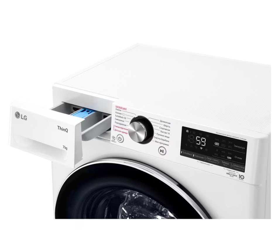 Стиральная машина Лджи AI DD F2V9HS9W выпущена в стандартной конфигурации — устанавливается отдельно, поэтому рекомендуем заранее выделить для нее место в квартире. Благодаря классической фронтальной загрузке она привычна и удобна даже для тех, кто не очень разбирается в технике. За счет небольшой глубины данную модель предпочитают владельцы небольших квартир, студий. Вместительность барабана средняя, поэтому ее хватит и для одиночек, и для семей с детьми. Максимальная загрузка: 7 кг.