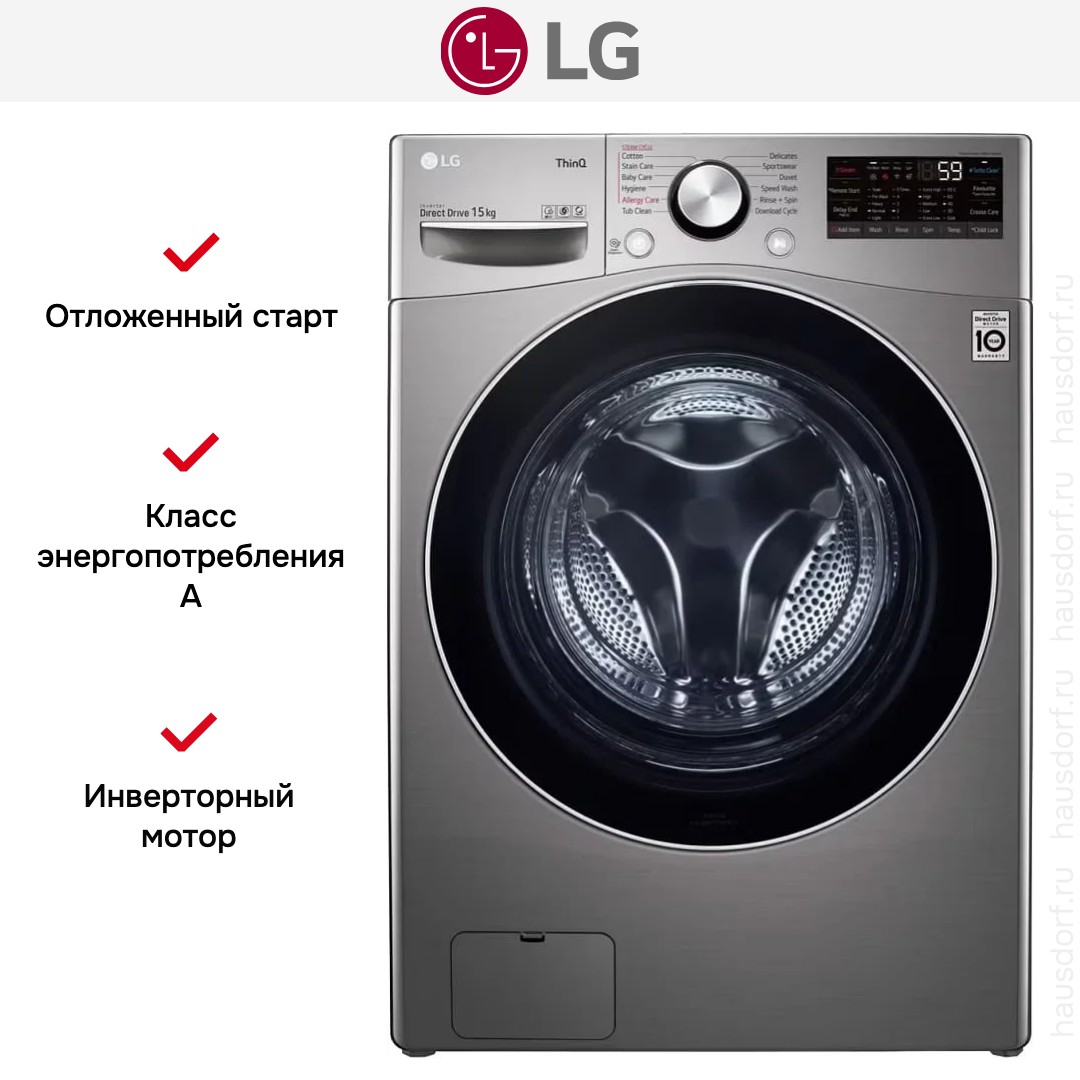 Стиральная машина Лджи F0L9DYP2S выпущена в стандартной конфигурации — устанавливается отдельно, поэтому рекомендуем заранее выделить для нее место в квартире. Благодаря классической фронтальной загрузке она привычна и удобна даже для тех, кто не очень разбирается в технике. В барабан помещается большое количество белья, что подойдет большим семьям или тем, кто часто стирает объемные вещи — постельное белье, верхнюю одежду. Максимальная загрузка: 15 кг.