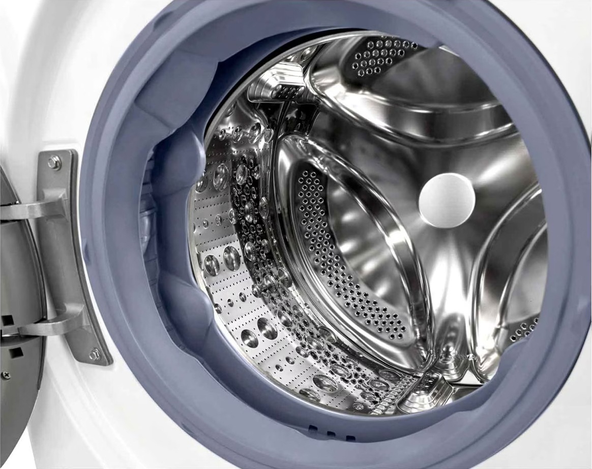 Цвет этой стиральной машинки — белый. Мотор: Инверторный. Благодаря ему машина работает тише, потребляет меньше электроэнергии, сохраняя при этом необходимую мощность.