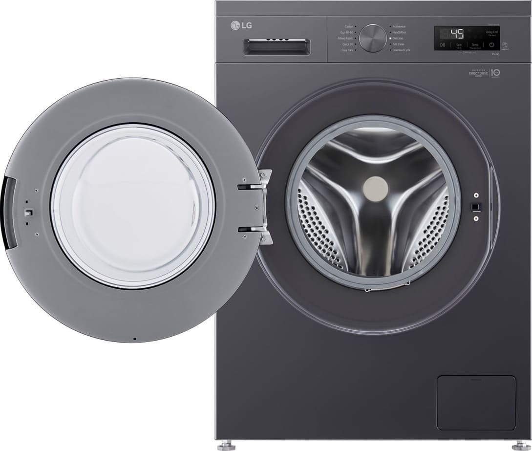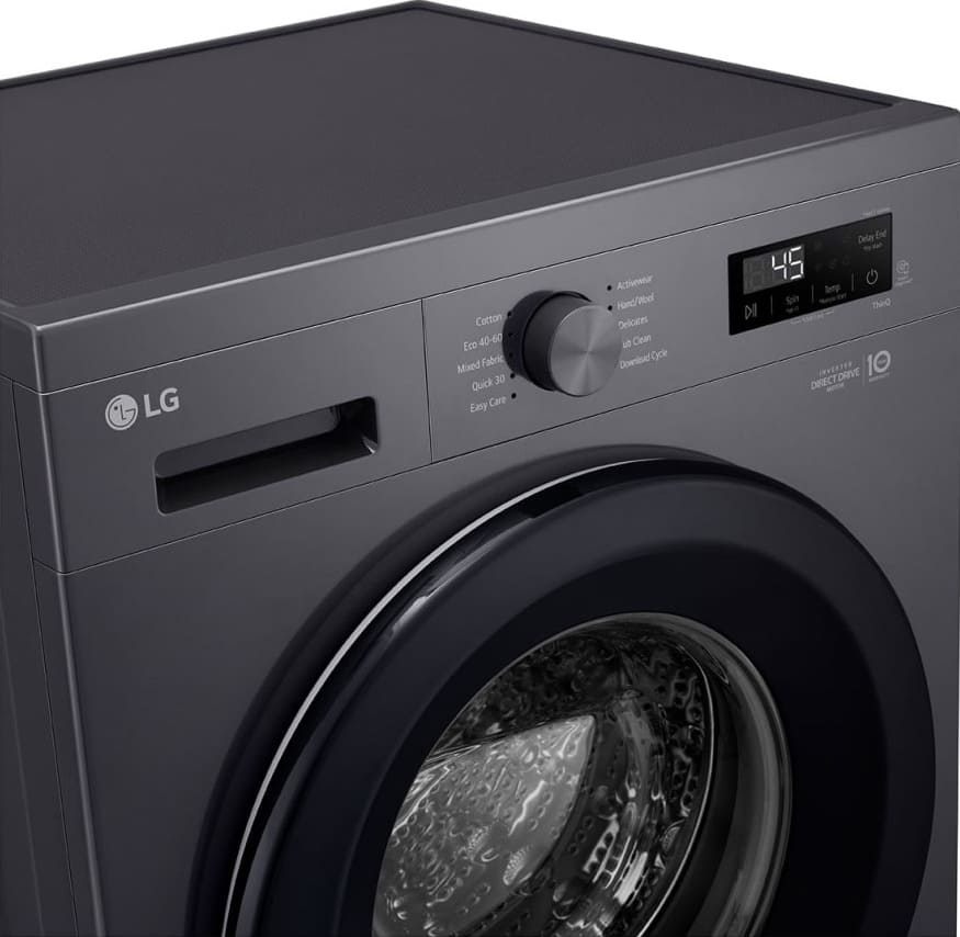 Цвет этой стиральной машинки — графит. Мотор: Инверторный. Благодаря ему машина работает тише, потребляет меньше электроэнергии, сохраняя при этом необходимую мощность.