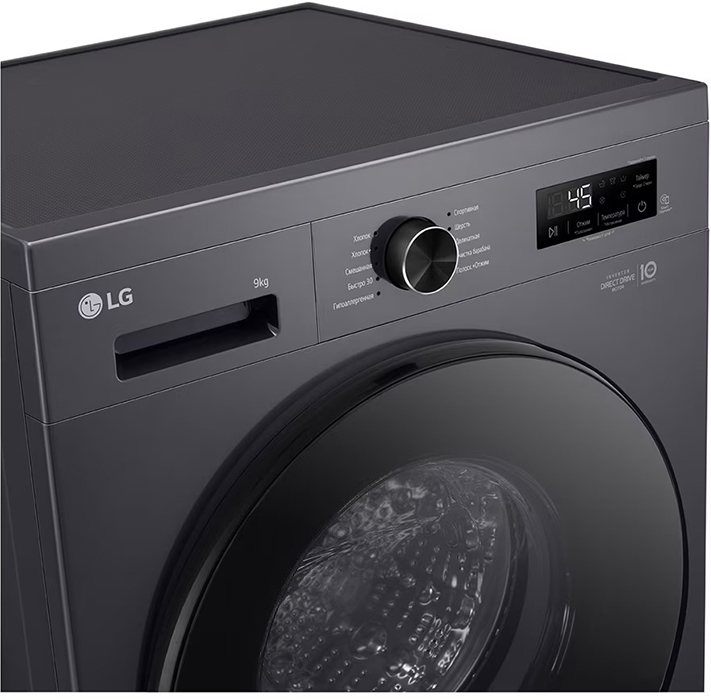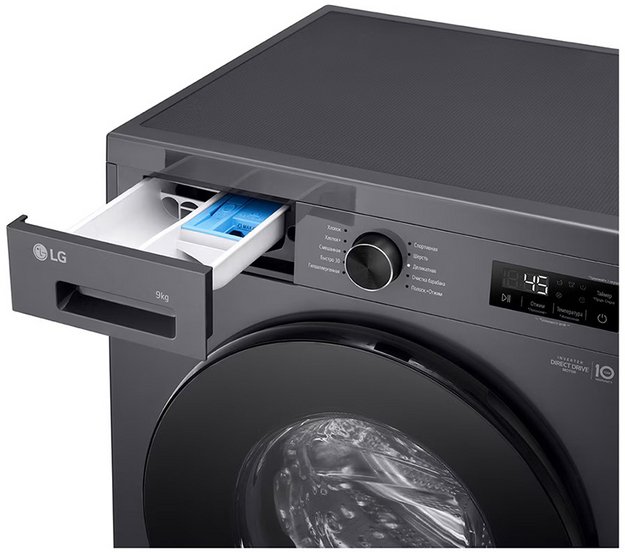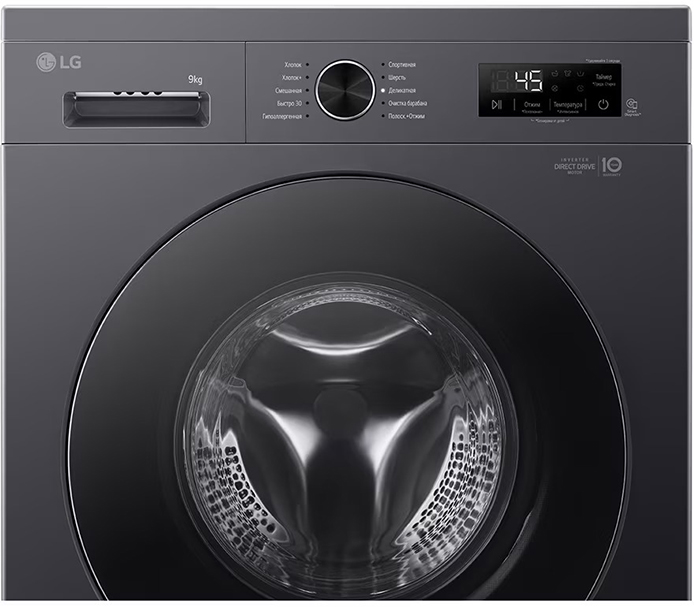 Цвет этой стиральной машинки — графитовый серый. Мотор: Инверторный. Благодаря ему машина работает тише, потребляет меньше электроэнергии, сохраняя при этом необходимую мощность.