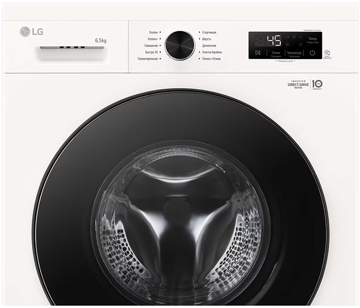 Цвет этой стиральной машинки — белый. Мотор: Инверторный. Благодаря ему машина работает тише, потребляет меньше электроэнергии, сохраняя при этом необходимую мощность.