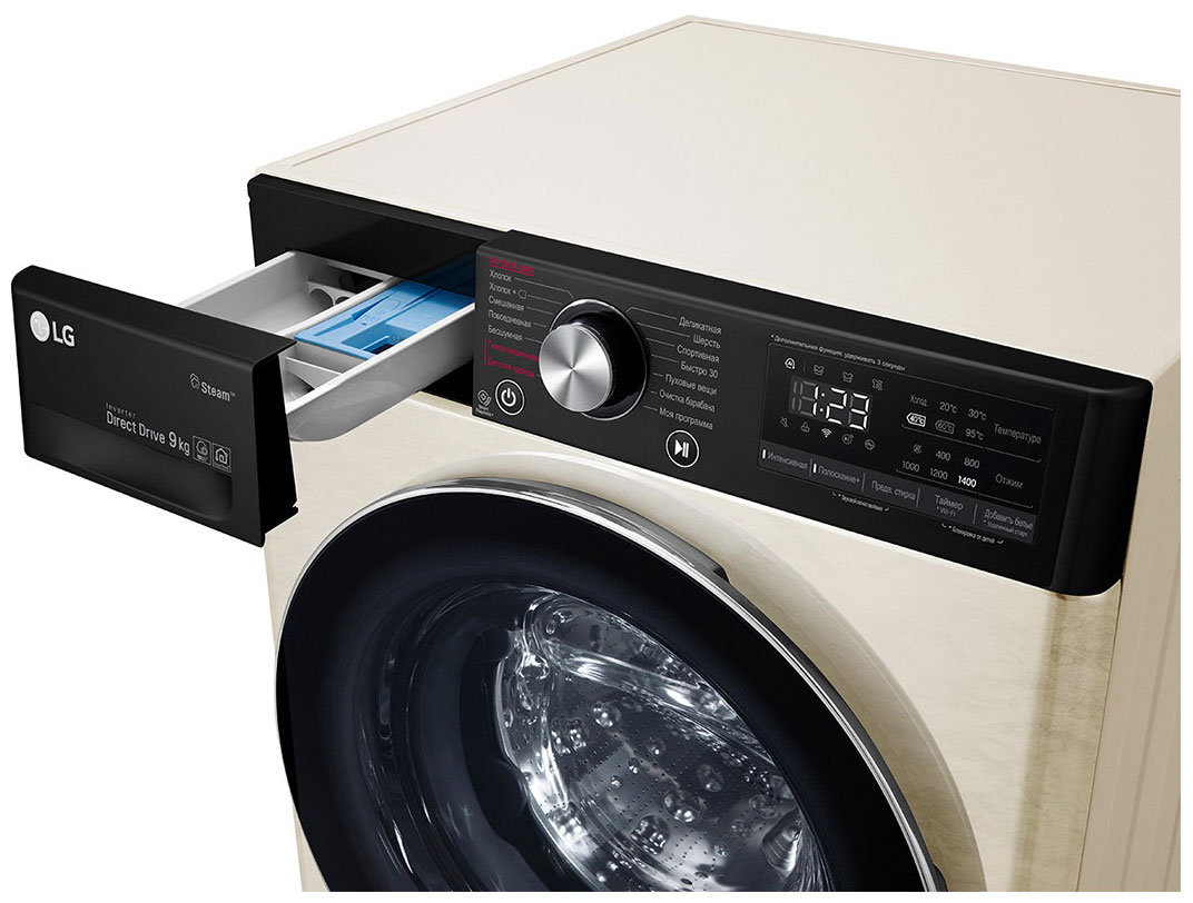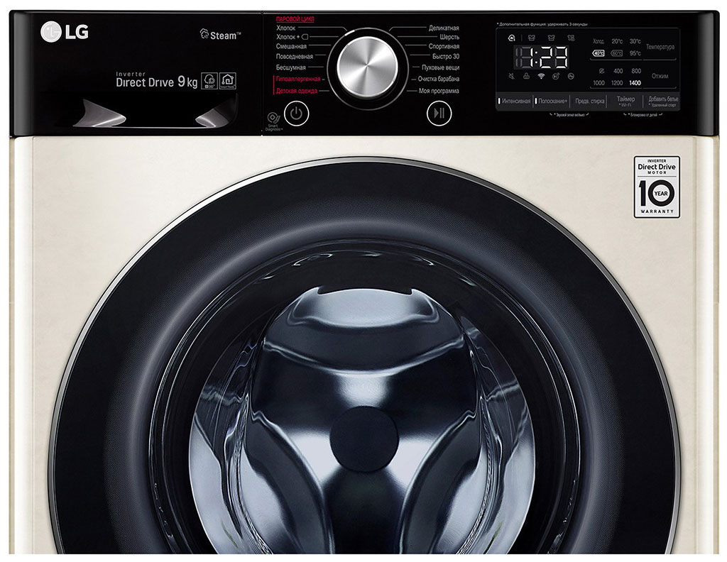 Стиральная машина Лджи F4V5VS9B выпущена в стандартной конфигурации — устанавливается отдельно, поэтому рекомендуем заранее выделить для нее место в квартире. Благодаря классической фронтальной загрузке она привычна и удобна даже для тех, кто не очень разбирается в технике. За счет небольшой глубины данную модель предпочитают владельцы небольших квартир, студий. Вместительность барабана средняя, поэтому ее хватит и для одиночек, и для семей с детьми. Максимальная загрузка: 9 кг.