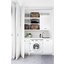 В отличие от другой встраиваемой техники, круглая дверца стиральных машин редко крепится к мебельному фасаду, она способна открываться отдельно. При размещении требуется оставлять зазор между задней стенкой машины и стеной помещения для свободного размещения шлангов. Нижняя часть стиралки закрывается цоколем, а верхняя — столешницей: крышку машины при этом иногда можно снять.
