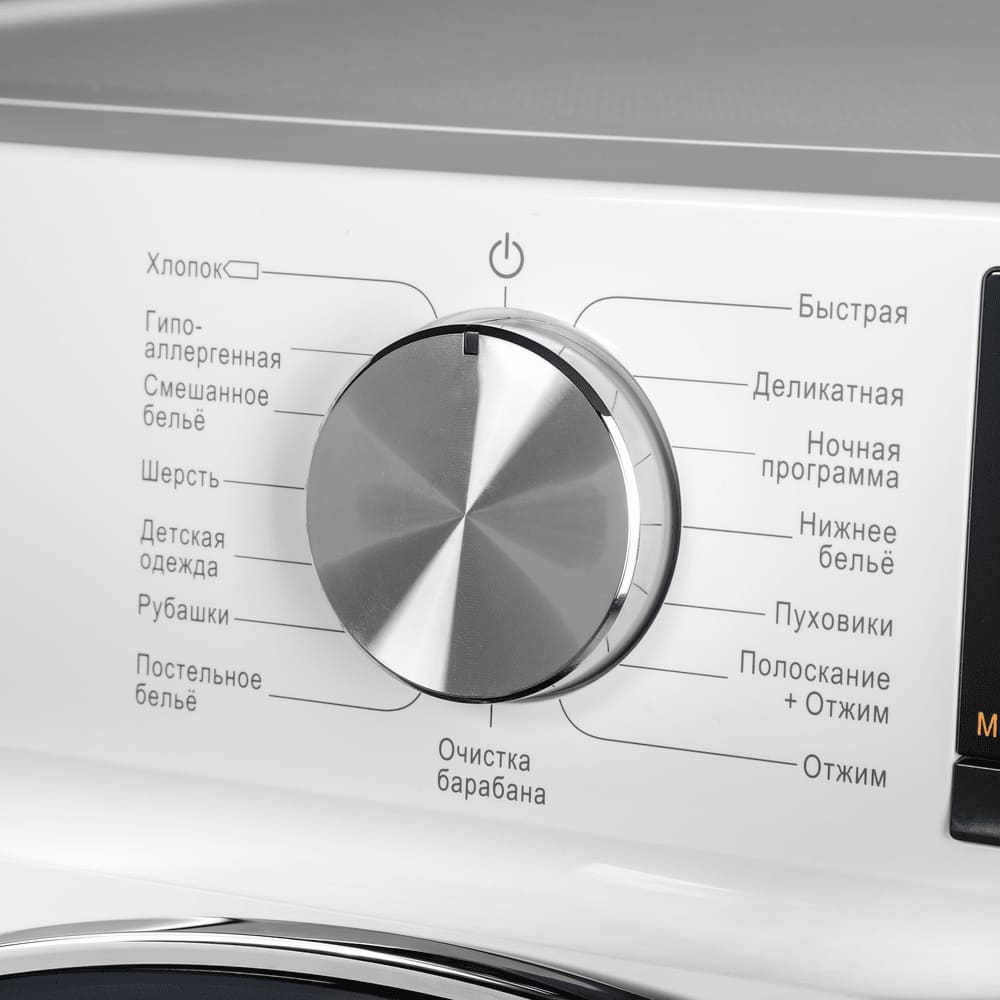 После основного этапа следует не менее трех-четырех циклов полоскания в большом количестве воды для удаления малейших следов моющего средства, а затем отжим на максимальной скорости. Допускается корректировка параметров, установленных в программе по умолчанию — например, снижение температуры для стирки цветных вещей или одежды с отделкой. Выбрать программу можно при помощи поворотного регулятора или кнопок на панели управления.