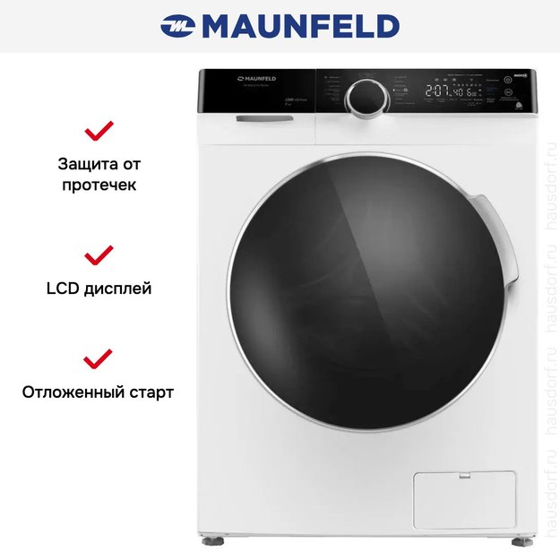 Стиральная машина Маунфилд MFWM127STWH06 выпущена в стандартной конфигурации — устанавливается отдельно, поэтому рекомендуем заранее выделить для нее место в квартире. Благодаря классической фронтальной загрузке она привычна и удобна даже для тех, кто не очень разбирается в технике. За счет небольшой глубины данную модель предпочитают владельцы небольших квартир, студий. Вместительность барабана средняя, поэтому ее хватит и для одиночек, и для семей с детьми. Максимальная загрузка: 7 кг.